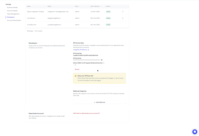 - Generate API Access Keys to obtain your API key and enable webhook configuration.