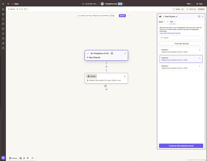 Once connected, you can customize your Zap to automatically enrich disputes, sync data across systems, and trigger actions exactly when you need them.