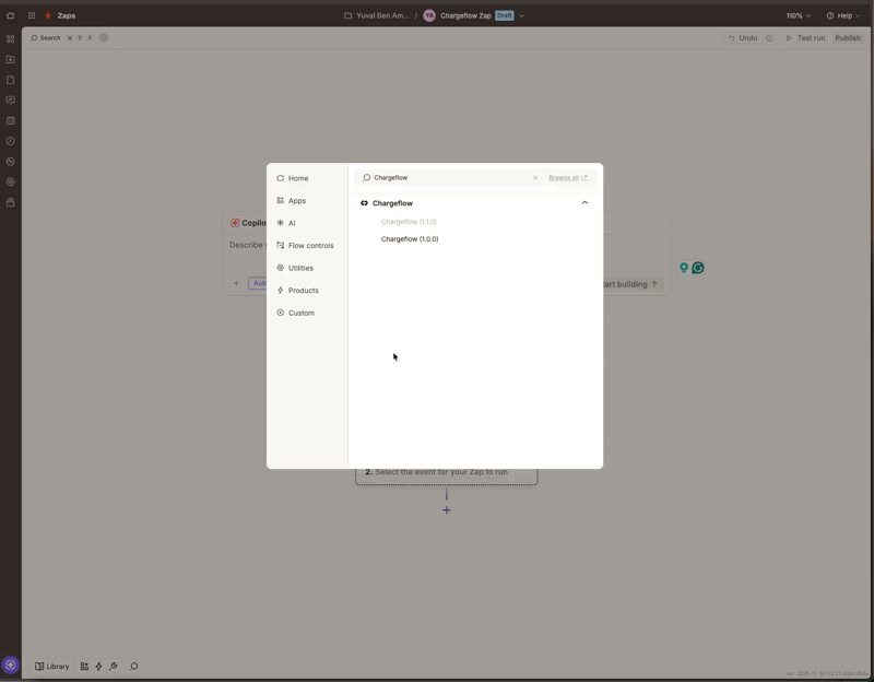 Click Trigger, which is the first step in the workflow, and search for Chargeflow in the apps search bar